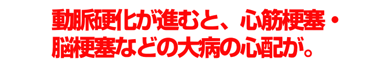 動脈硬化が進むと、心筋梗塞や・狭心症・脳梗塞といった 大病の心配がでてきます。 一度心筋梗塞や脳拘束になると、命にかかわる事態になることが多く、 非常に危険な病気といえます。