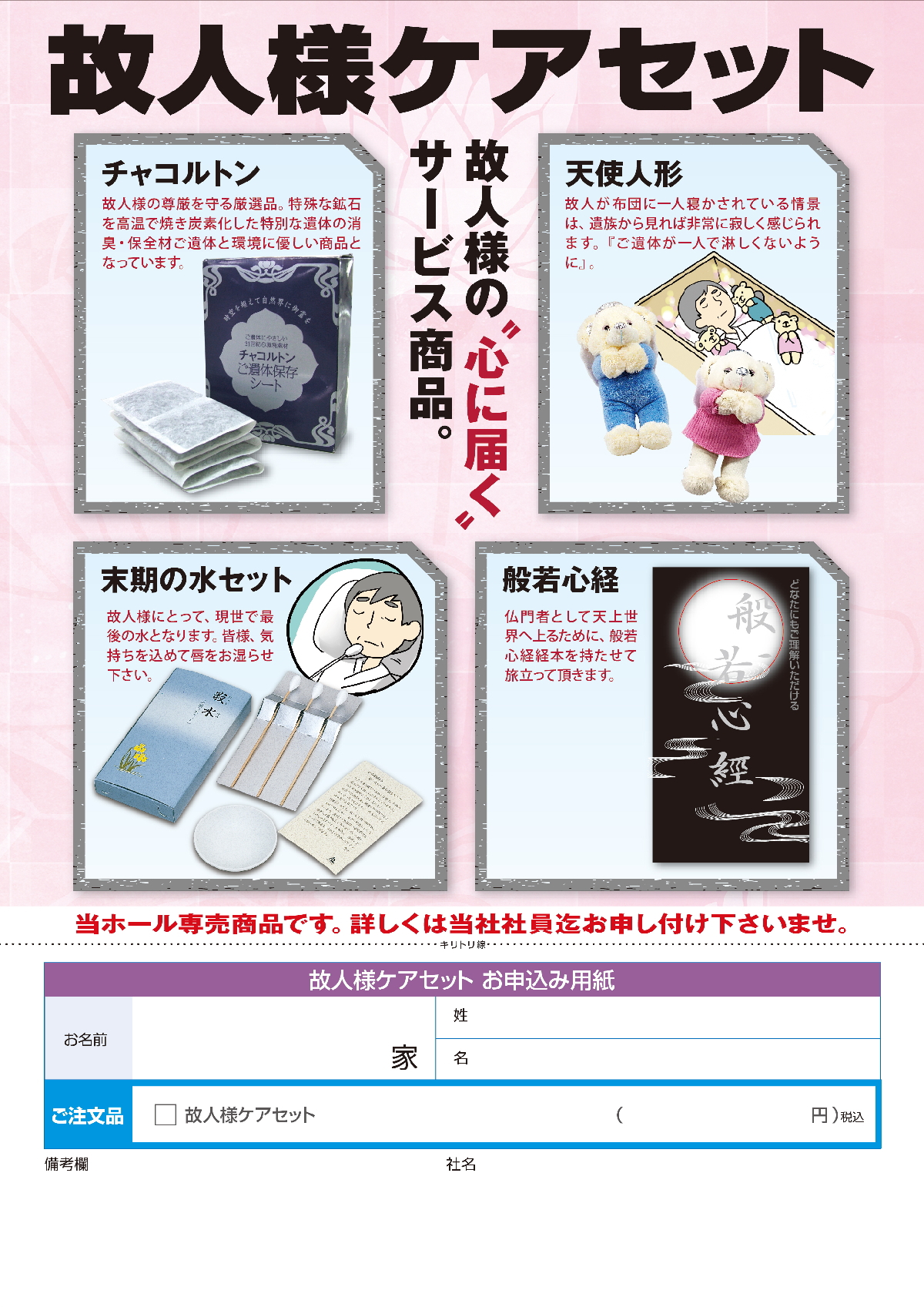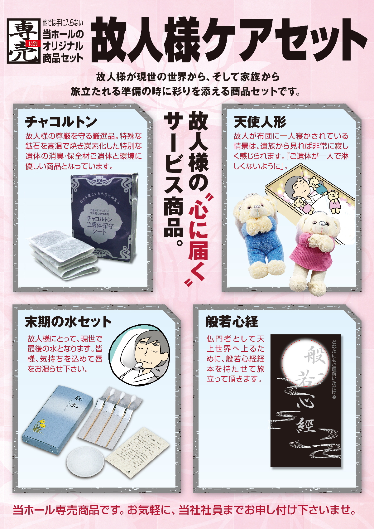 故人様のお旅立ちに際してのケア商品です。